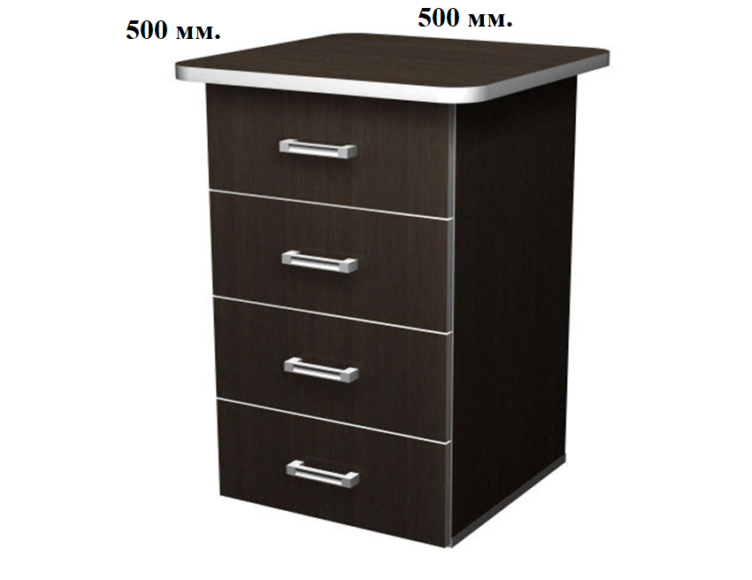 Тумбы топы тумб - ЛДСП 22 мм., кромка ПВХ-алюминий, корпуса - ЛДСП 16 мм. Тумбы на колёсах серого цвета, днища ящиков-ДВП цвет серый (в паз). Ручки - алюминий. приставные тумбы имеют регулируемые опоры.