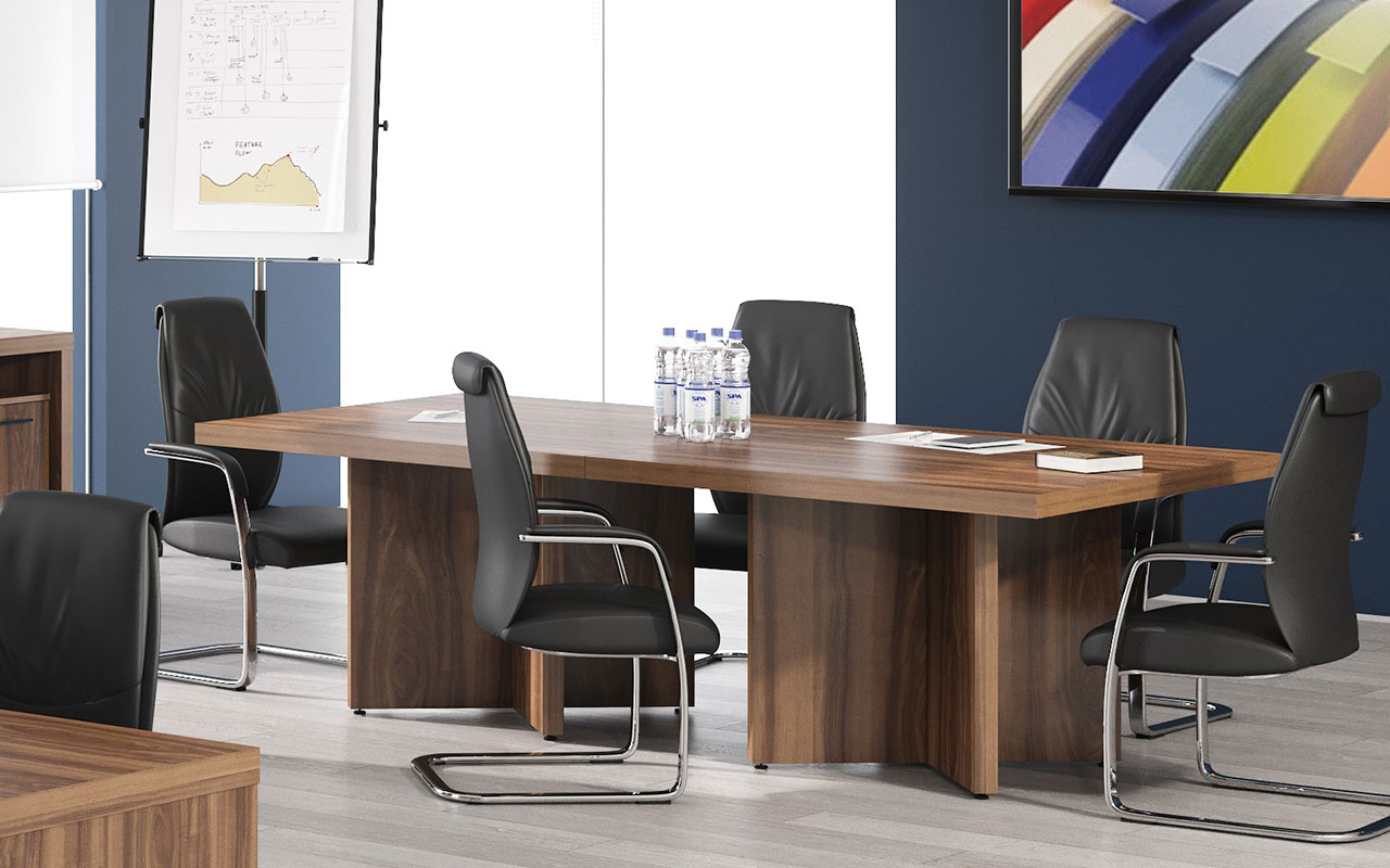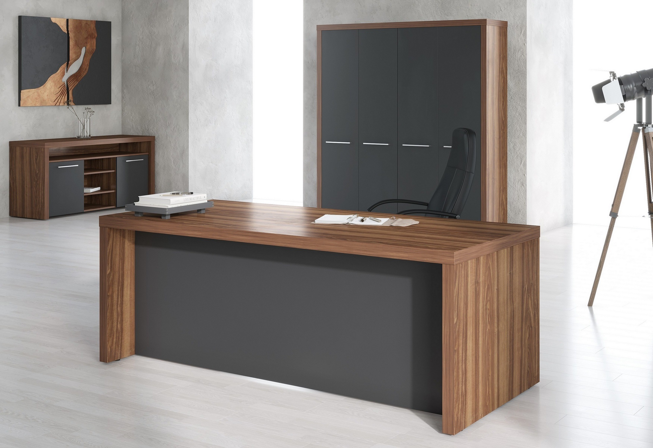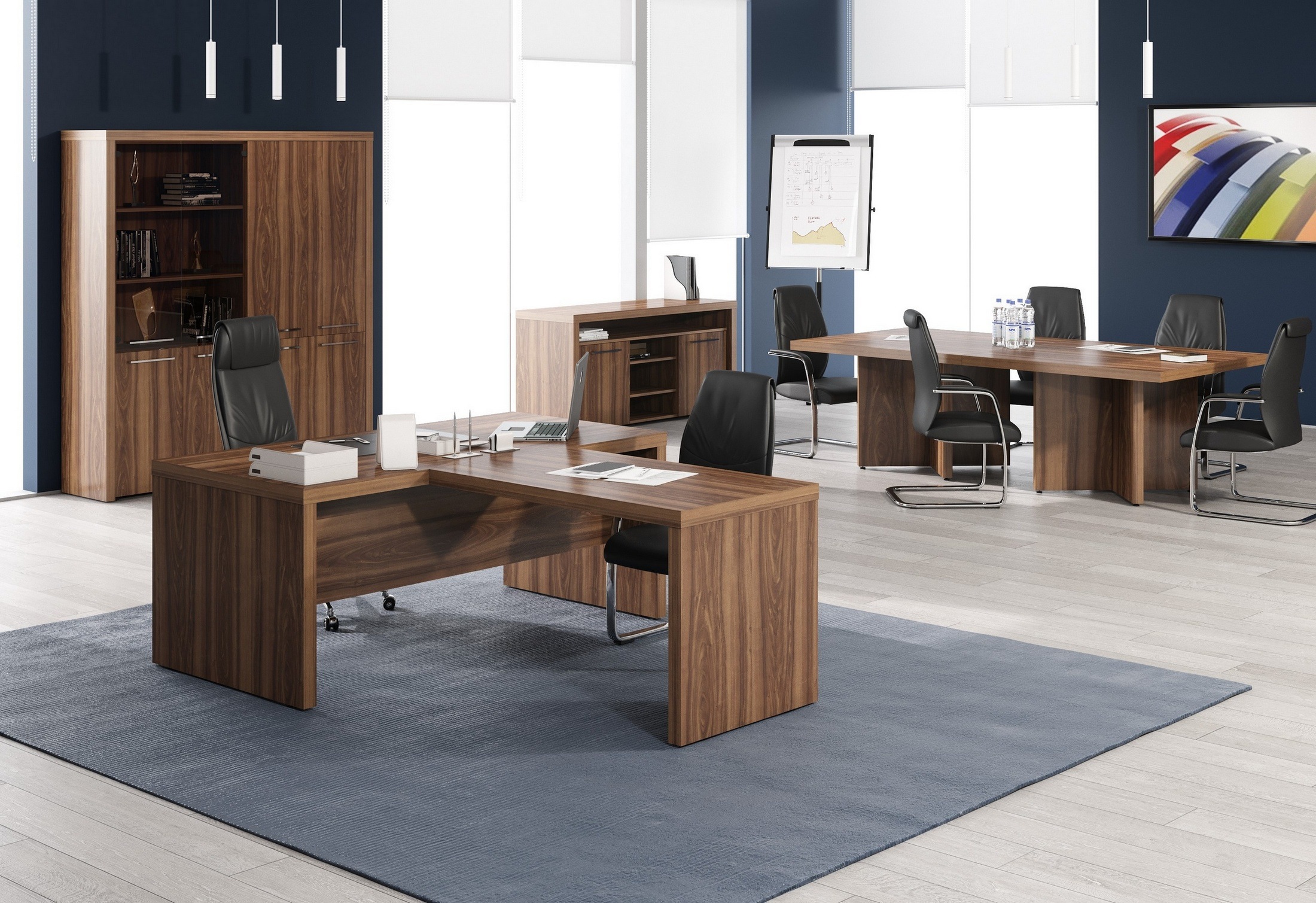 Офисная мебель ZENN сочетает в себе современные минималистические формы и солидность традиционной классической мебели. Столешницы и опоры толщиной 54 мм. - масивные и основательные. Декор - классический орех с яркой тестурой - сама респектабельность.