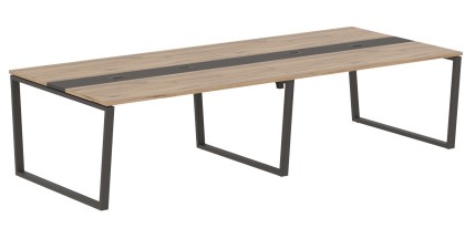 Технические характеристики: толщина столешниц столов, топы тумб, шкафов ЛДСП 25 мм., остальные детали 18 мм. Соединение столешницы и опор через металлические проставки. На столешнице есть металлический кабель-канал 160х80х25 мм. Задняя стенка тумб и шкафов ЛДСП. Тумбы оснащены телескопическими направляющими плавного хода, два колеса имеют стопоры. Фасады без ручек, открывание ящиков за счёт удлинённый стороны фасадов. Центральные замки на тумбах и слайд-дверях. Стеклянные двери тонированные "бронза серое" в металлической раме. Столы письменные имеют ширину 670 мм и 800 мм. Опоры столов из ЛДСП или металлические опоры V - формы 60 х 30 мм
